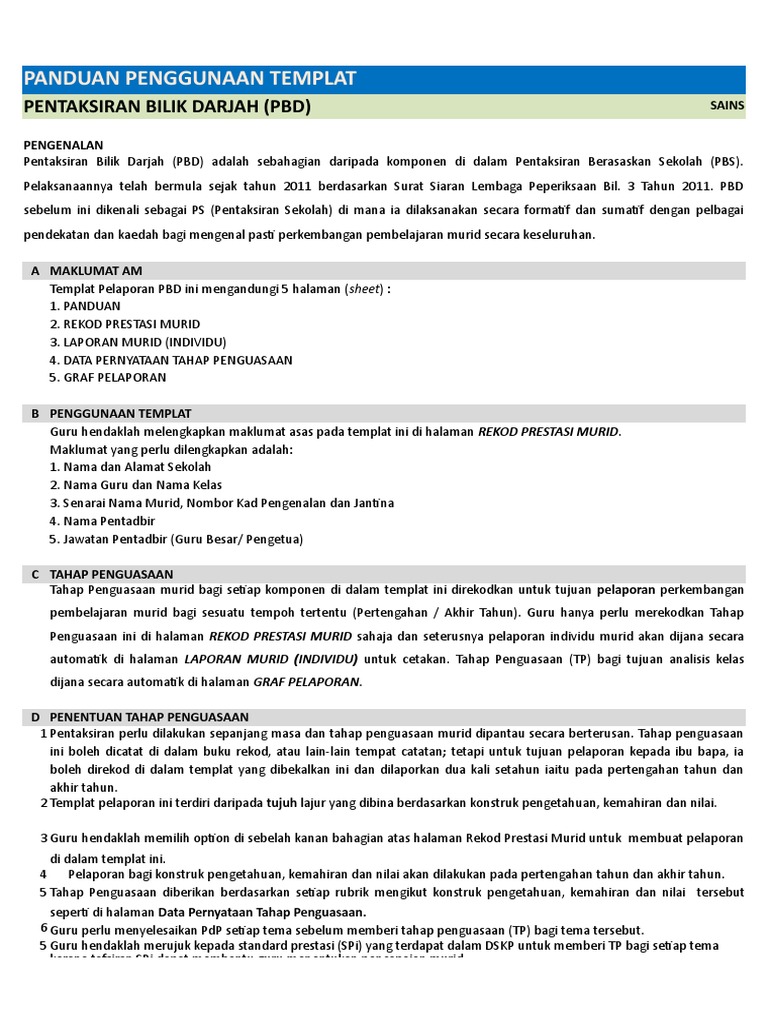 Panduan Penggunaan Templat Pelaporan Pentaksiran Bilik Darjah Pbd Education Guru
