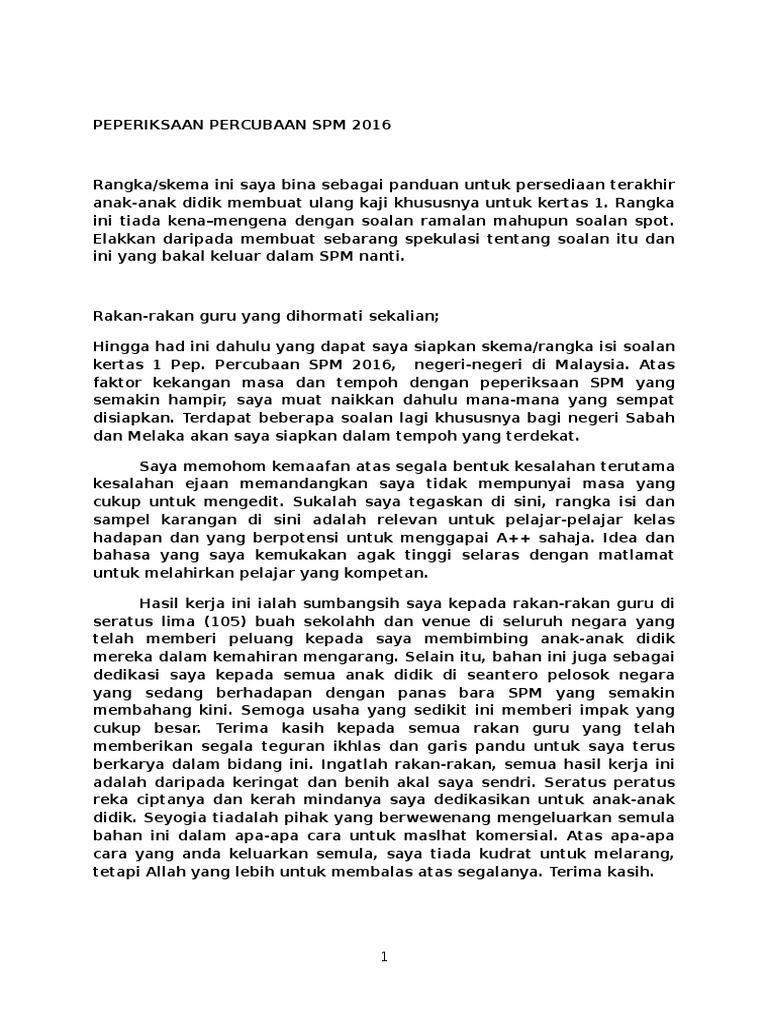 Kertas Soalan Peperiksaan Percubaan Spm Bahasa Melayu Sarawak 2016 Gurubesar My