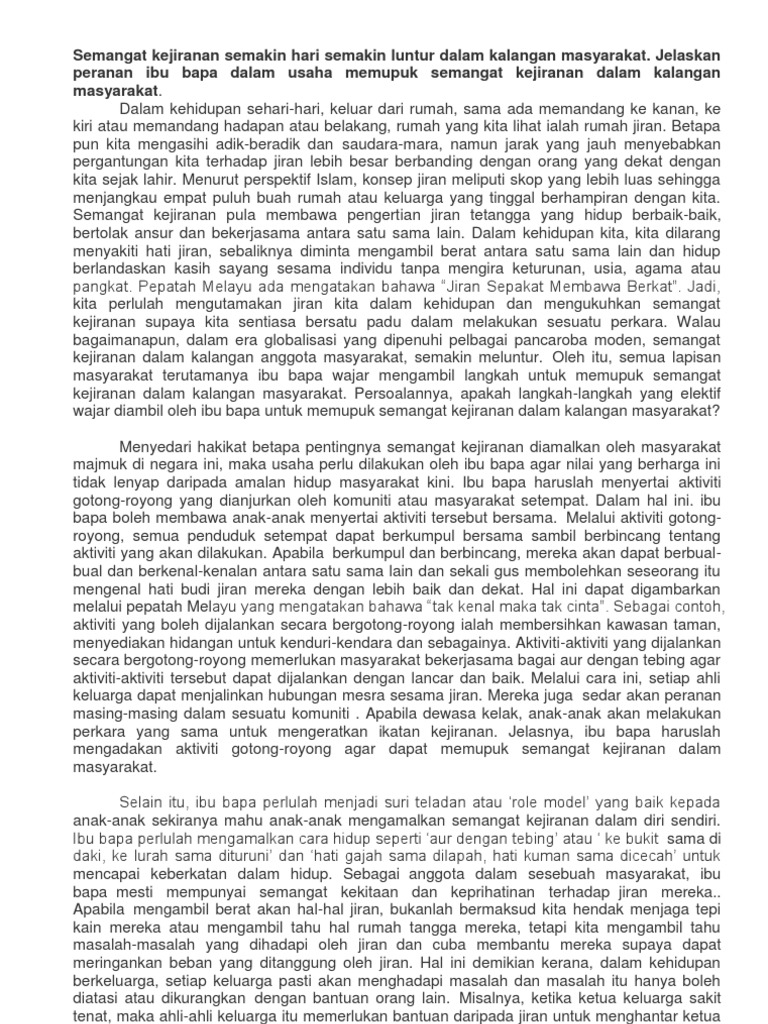 Tema Popular Karangan 2012 1 Semangat Kejiranan