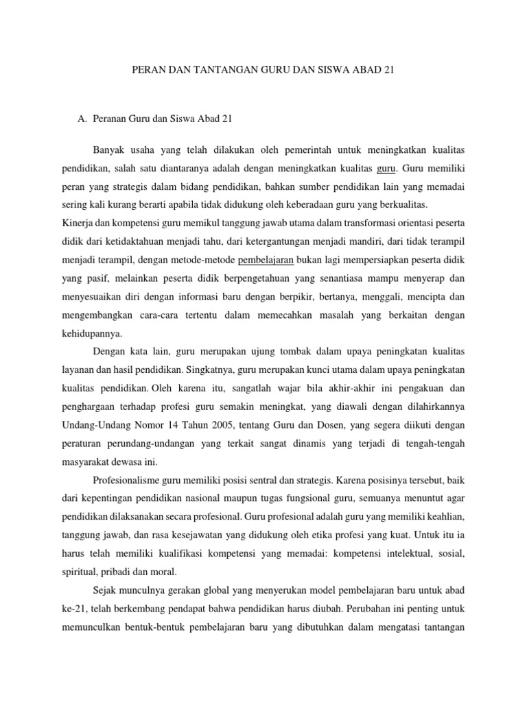 Peran Dan Tantangan Guru Dan Siswa Abad 21