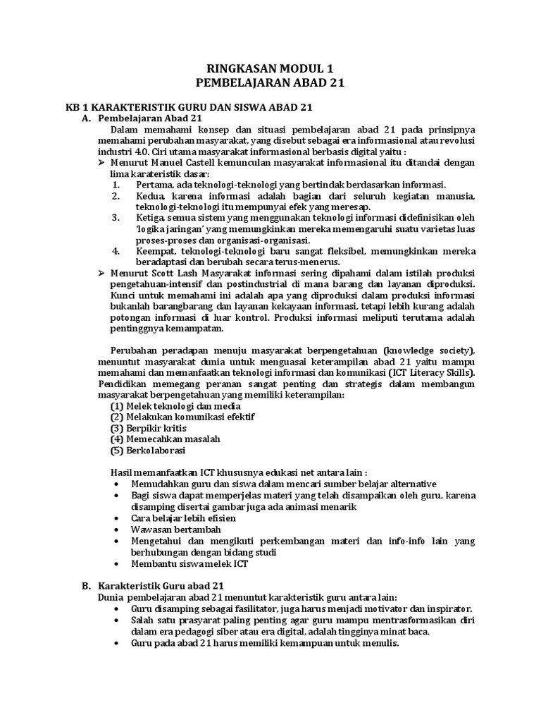 Ringkasan Modul 1 Pembelajaran Abad 21 Kb 1 Karakteristik Guru Dan Siswa Abad 21