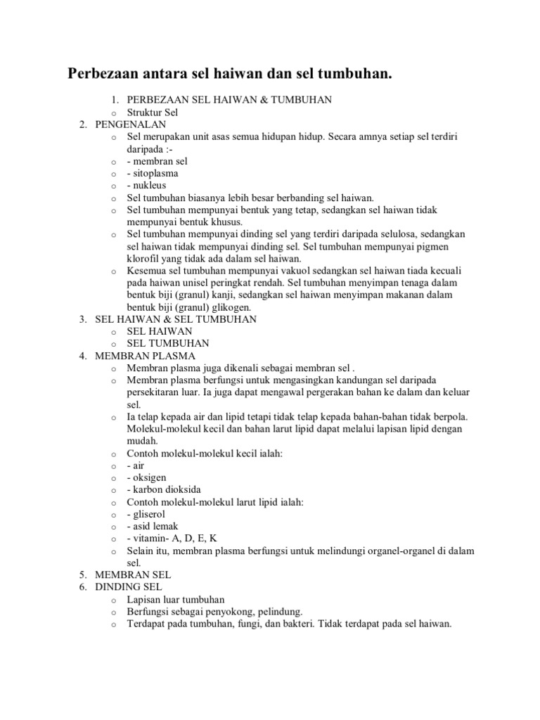 Perbezaan Sel Haiwan Dan Tumbuhan