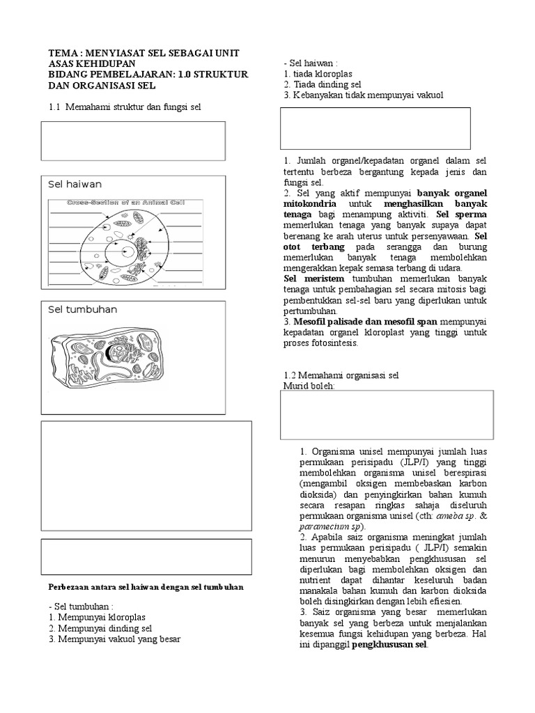 Bab 2 Sel Haiwan Dan Sel Tumbuhan Pdf Document
