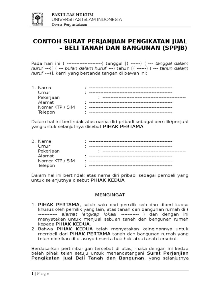 Contoh Surat Perjanjian Pengikat Jual Beli Tanah Dan Bangunan Fh Uii