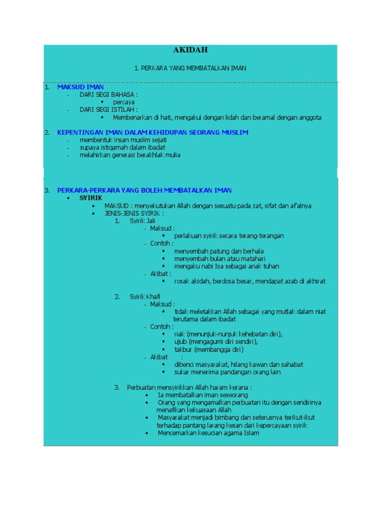 Akidah Perkara Perkara Yang Membatalkan Iman