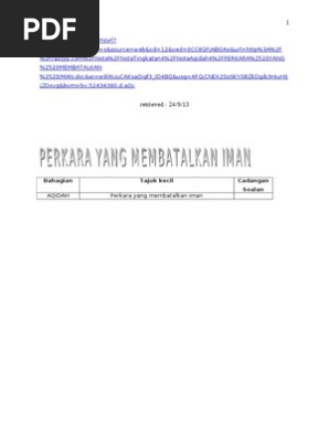 Akidah Perkara Yang Membatalkan Iman Padankan