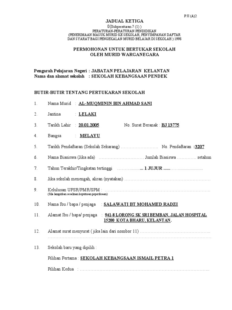 Doc Borang Pertukaran Murid Format Baru 2016 1 Abdul Jalil Academia Edu