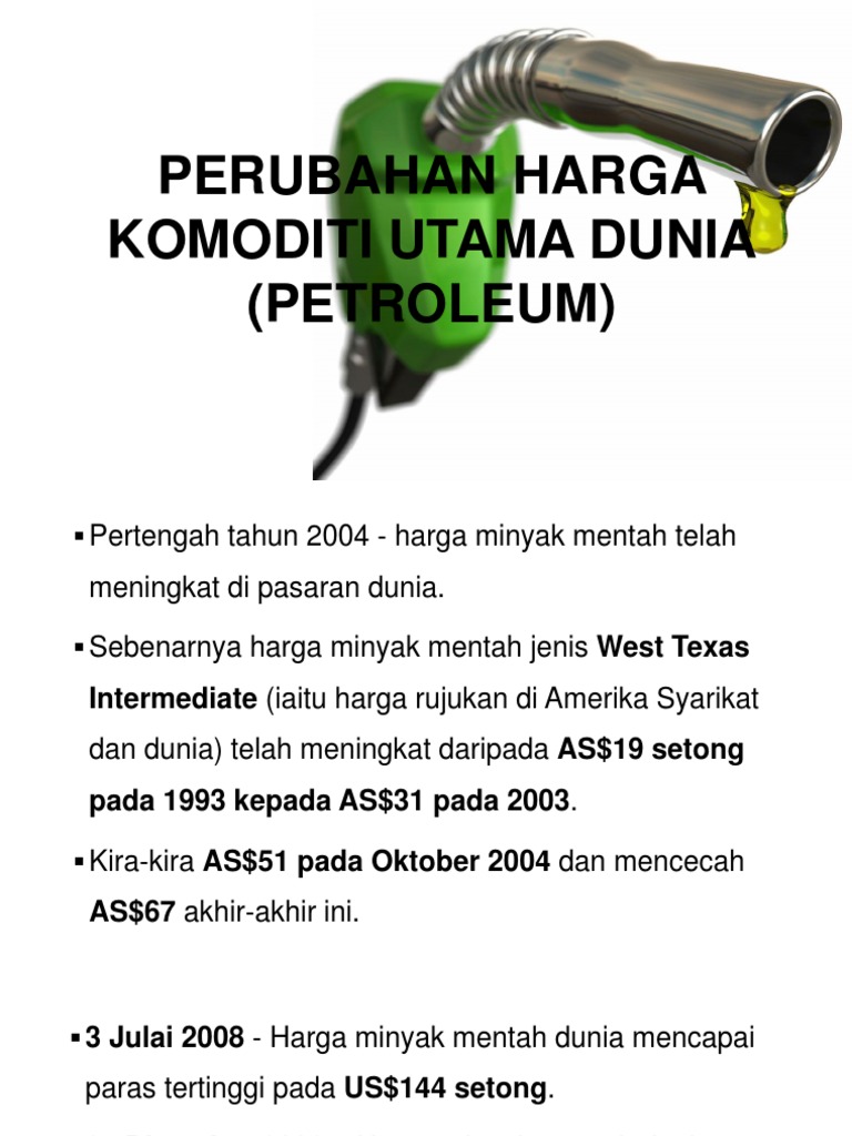 Perubahan Harga Komoditi Utama Dunia Petronas By Fiza Yazid