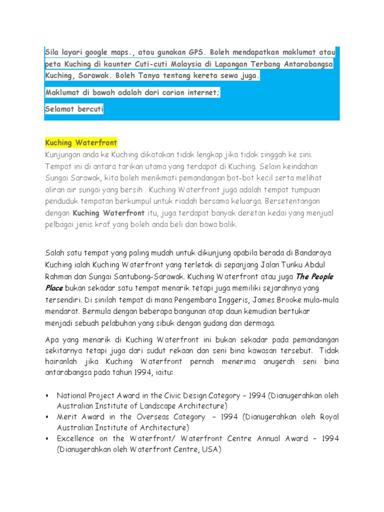 Senarai Tempat Menarik Di Kuching Untuk Di Lawati Waktu Solat Dot Net