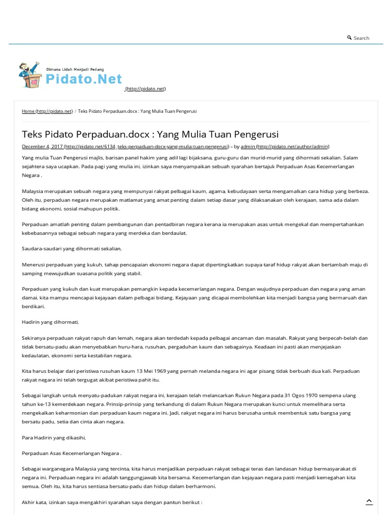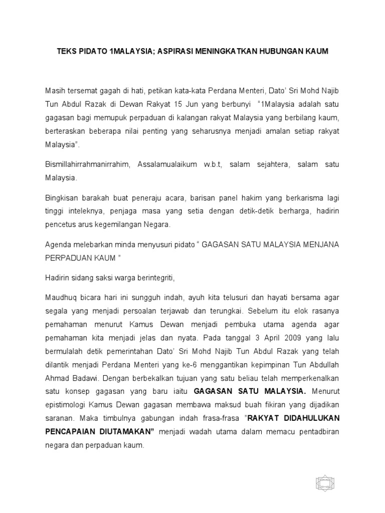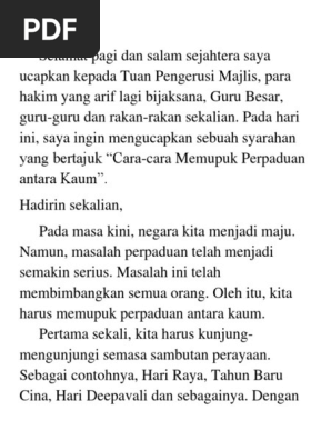 Teks Syarahan Perpaduan Nikmat Keamanan Tunjang Perpaduan Di Malaysia