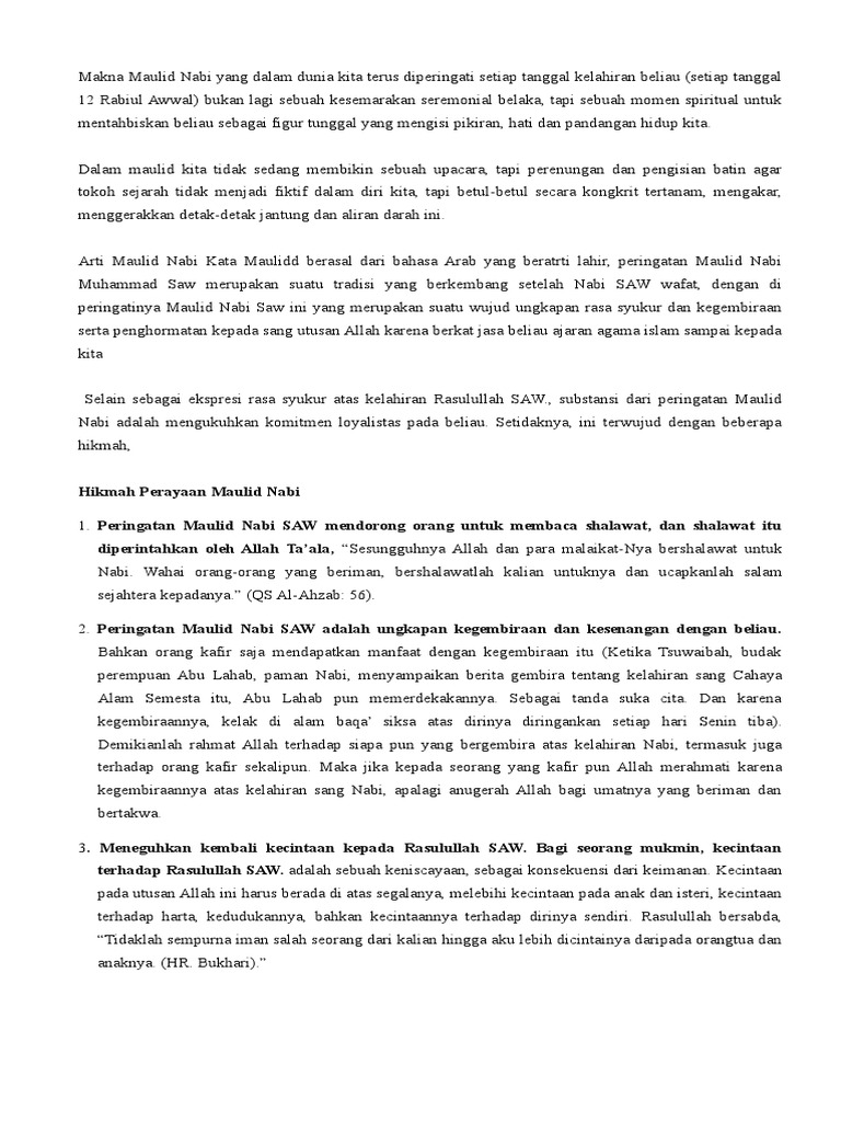 Doc Pidato Singkat Peringatan Maulid Nabi Muhammad Saw Daurulang Daur Academia Edu