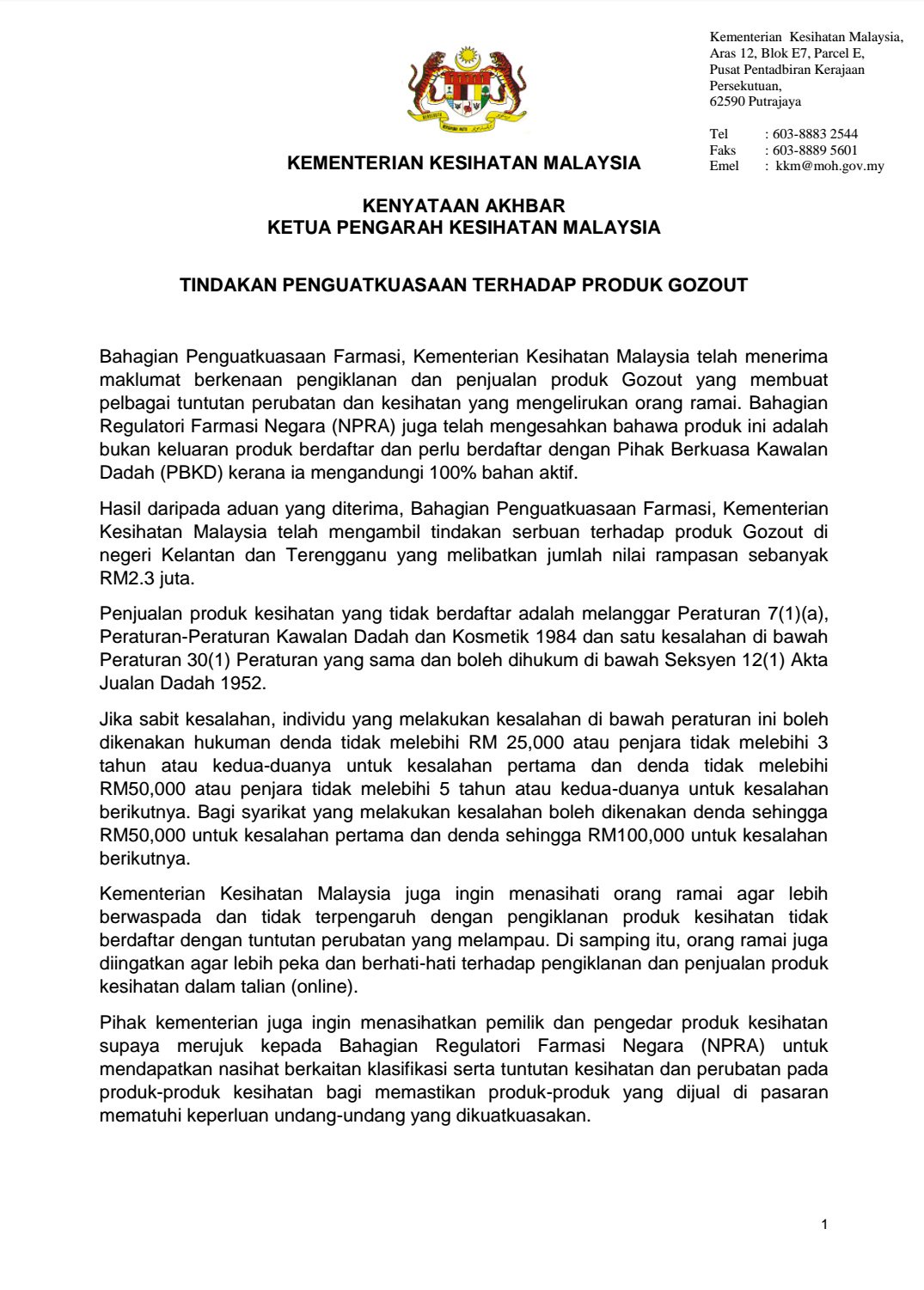 Malissa Sahari On Twitter Bahagian Penguatkuasaan Farmasi Kementerian Kesihatan Malaysia Telah Mengambil Tindakan Serbuan Terhadap Produk Gozout Di Kelantan Dan Terengganu Melibatkan Jumlah Nilai Rampasan Rm2 3 Juta Gozout