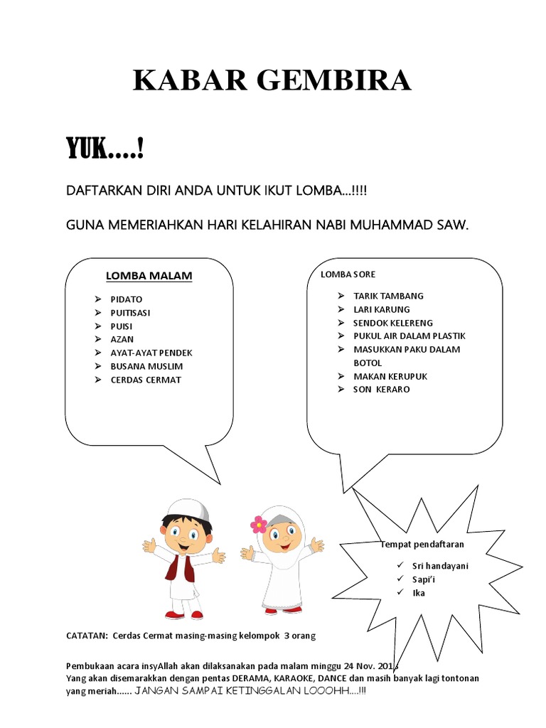 Kabar Gembira Daftarkan Diri Anda Untuk Ikut Lomba Guna Memeriahkan Hari Kelahiran Nabi Muhammad Saw