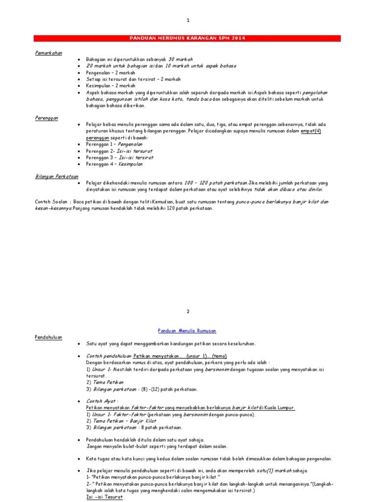 Panduan Merumus Karangan Spm 2014