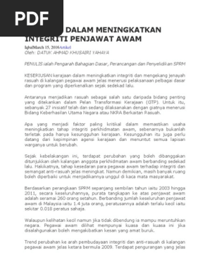 Etika Dan Integriti Dalam Perkhidmatan Awam Pdf