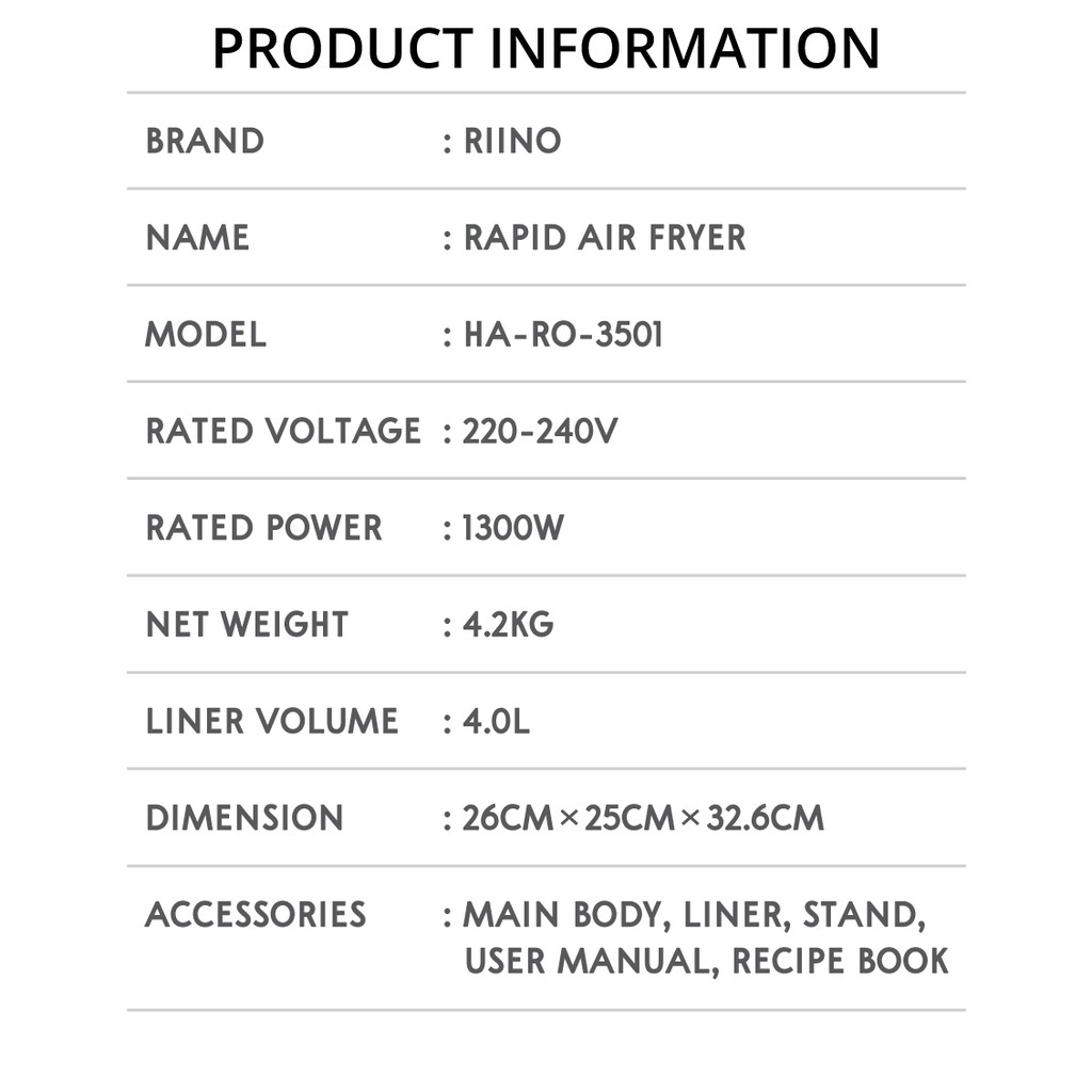 Riino Rapid Air Fryer Xl Oil Free Aerodynamic Multifunctional 4l Af3501 Shopee Malaysia