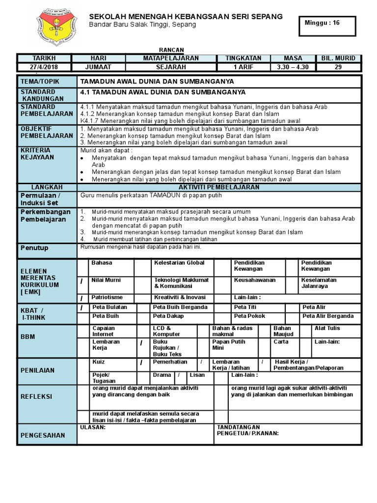 Download Rpt Sejarah Tingkatan 2 Bernilai Rancangan Pengajaran Dan Pembelajaran Sejarah Tingkatan 4 Skoloh