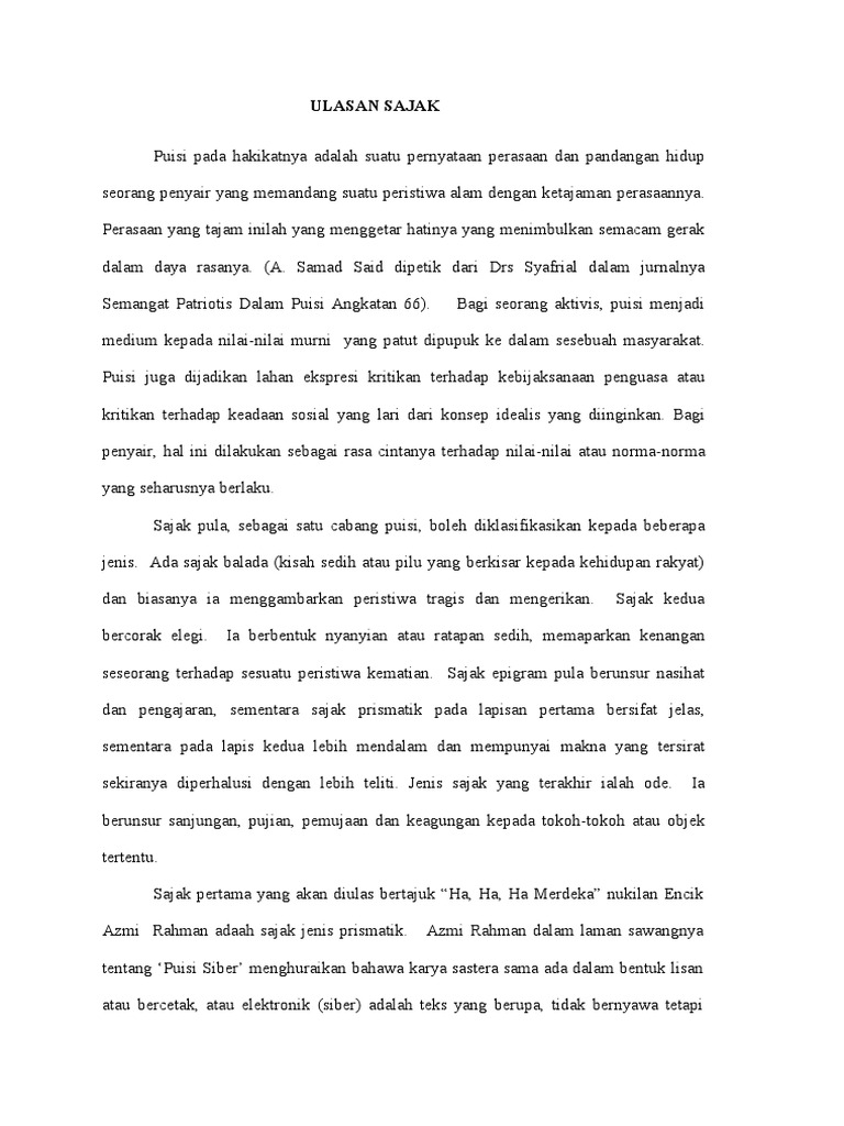 Doc Sejarah Dan Perkembangan Sajak Docx Linda Rajun Academia Edu