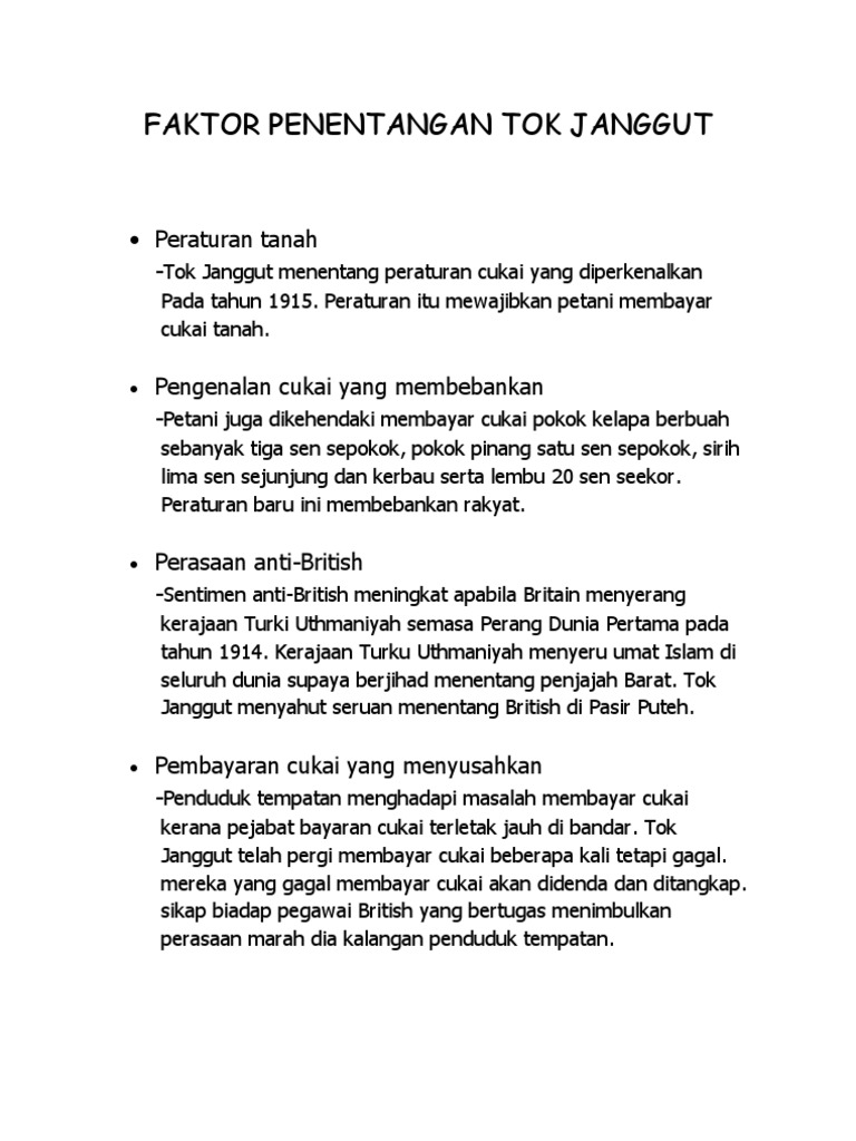 Faktor Penentangan Tok Janggut Upload Docx