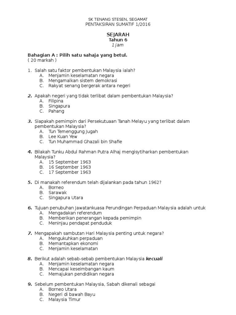 Pembentukan Malaysia Sejarah Tahun 6