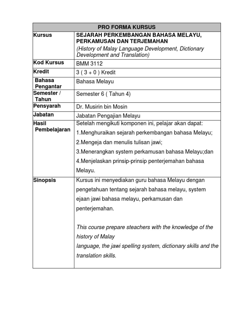 Doc Bmm 3112 Sejarah Bahasa Melayu Perkamusan Dan Terjemahan Hashim Abdullah Academia Edu