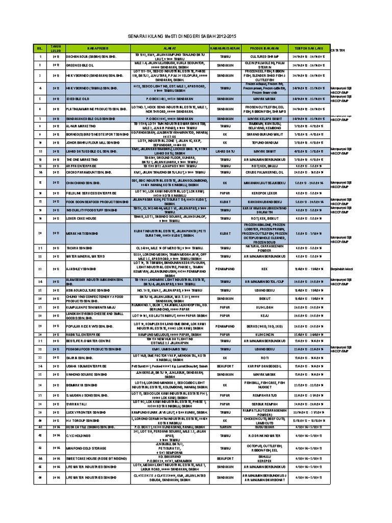 Senarai Kilang Yang Mendapat Sijil Mesti Di Sabah Kemaskini 9 April 2015