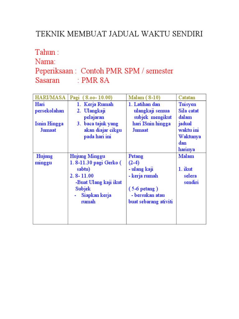 Sendiri cara membuat jadual belajar. Anak ketiga daripada empat beradik itu berkata dia membuat jadual belajar sendiri supaya dapat membahagikan masa dengan baik dan ia membantunya menjadi lebih disiplin. Jika ingin membuat desain saat bepergian download aplikasi jadwal pelajaran kami untuk android iphone atau ipad yang dapat dibeli gratis di applestore dan playstore. Cara buat jadual belajar yang mudah berkesan berikut dikongsikan adalah cara buat jadual belajar yang power dan mudah sebagai rujukan anda.