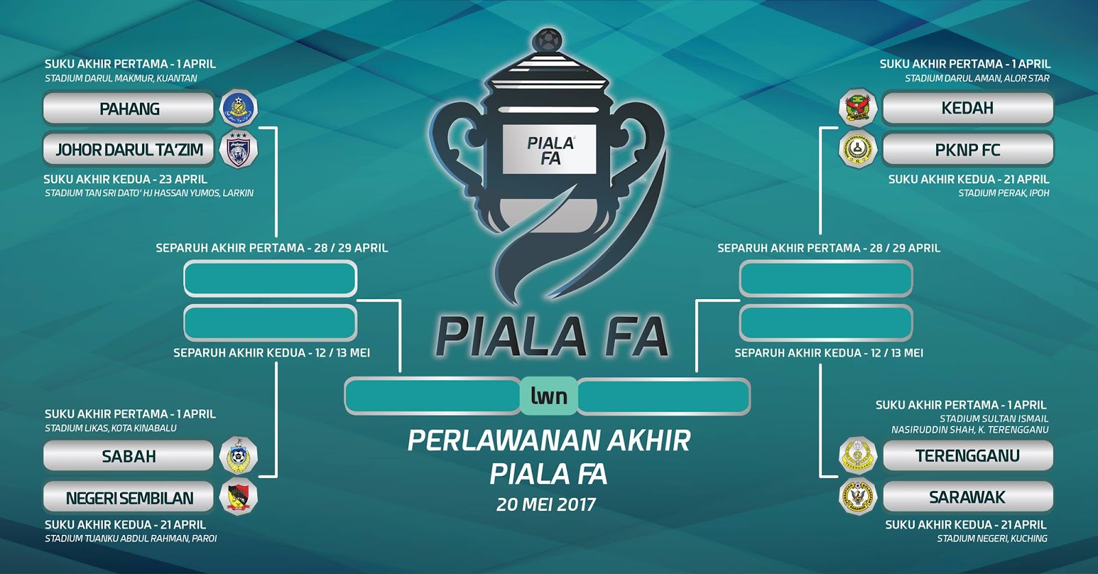 Jadual Perlawanan Separuh Akhir Piala Fa 2017