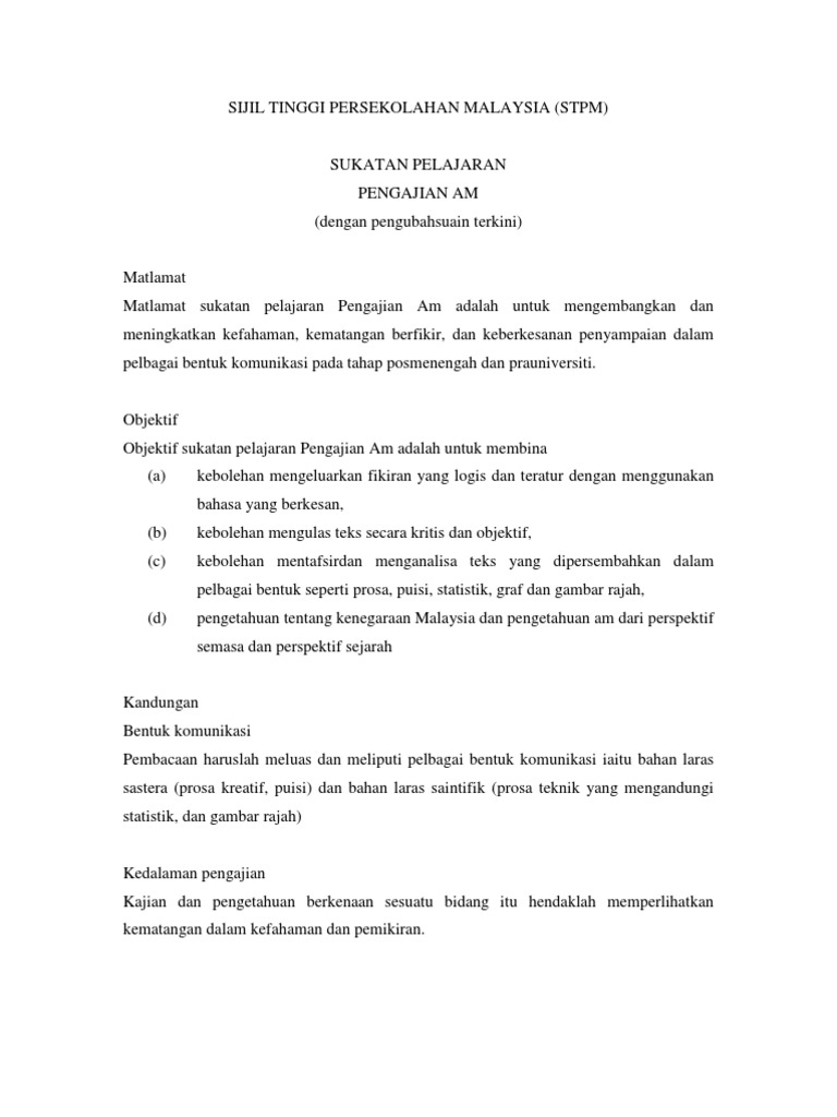 Sukatan Pelajaran Stpm Baharu Pengajian Am Ppt Download
