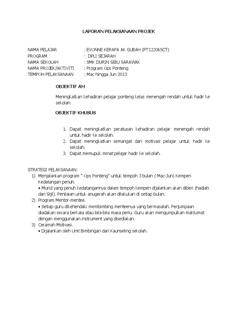 Doc Contoh Proposal Masalah Ponteng Irdahayu Ramly Academia Edu