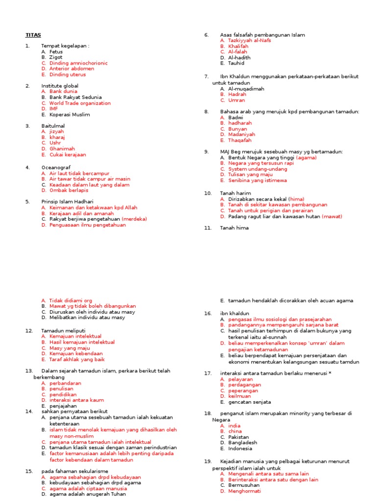 Contoh Soalan Objektif Tamadun Islam Dan Tamadun Asia Terengganu W