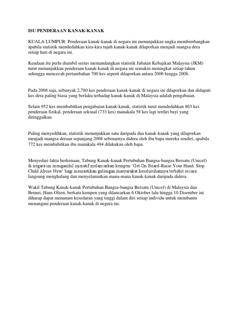 Statistik Kes Penderaan Kanak Kanak Di Malaysia Hak Kehidupan Ini Disebut Melalui Artikel Artikel Pdf Document