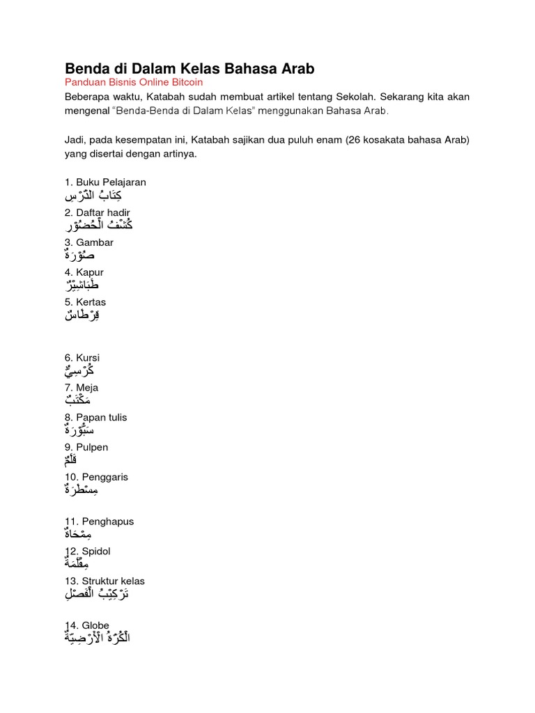 Benda Di Dalam Kelas Bahasa Arab