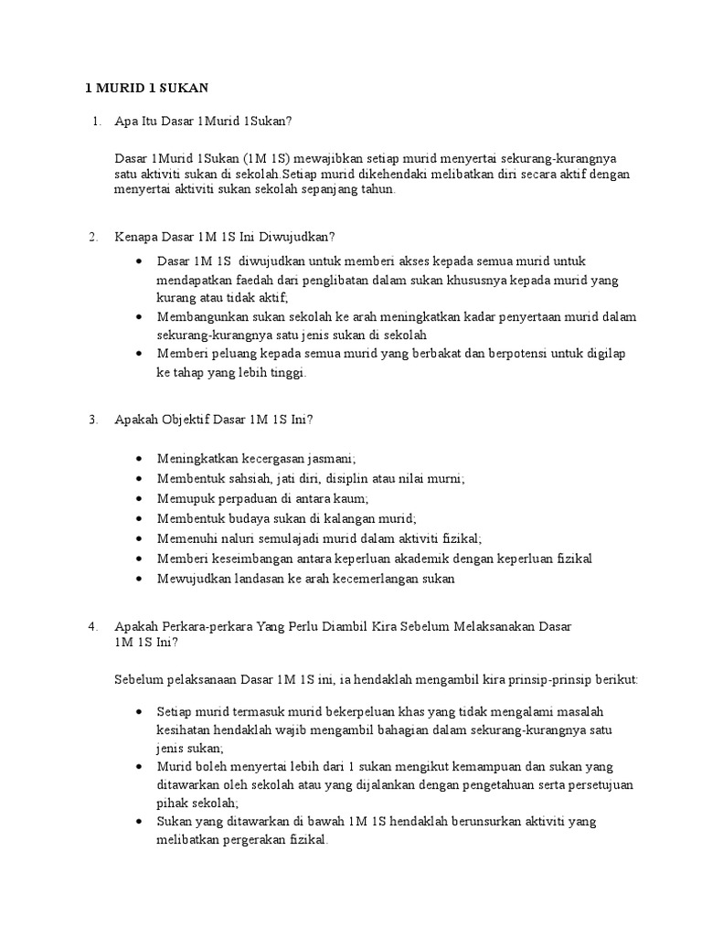 Soalan Lazim Berkaitan 1 Murid 1 Sukan