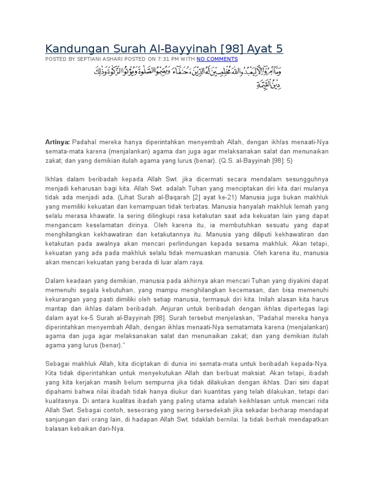 Surah Al Bayyinah Ayat 5 Qs 98 5 Tafsir Alquran Surah Nomor 98 Ayat 5