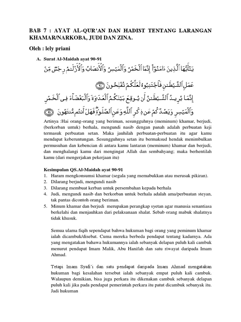 Doc Tafsir Surah Al Maidah Ayat 90 91 Nur Fadhillah Academia Edu