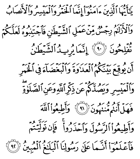 Jelaskan Makna Dari Surah Almaidah Ayat 90 91 Brainly Co Id